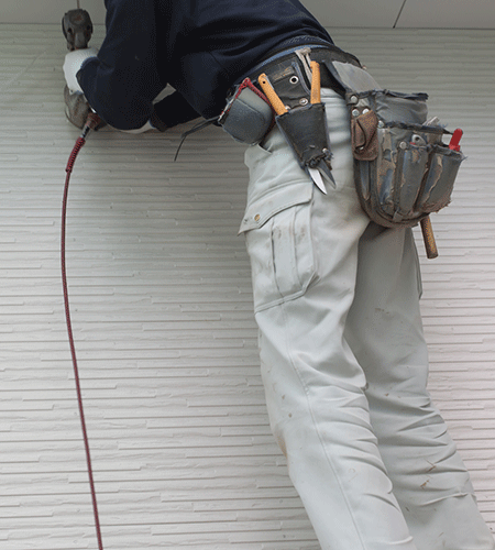 設計図に従って床や壁に指定のタイルを張りつける工事です。タイル工事では浴室やキッチンなどの部分的なタイル工事から、外装全面にまで及ぶ大規模なタイル工事まで幅広く活躍します。